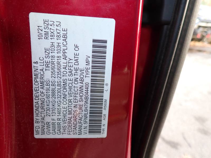 5FNRL6H79NB044400 | احمرالسيارة مودودة حاليا في الامارات في مرحلة التصليح