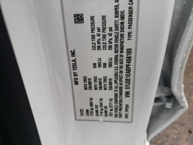 2023 TESLA MODEL 3 5YJ3E1EA8PF458189 | ابيض Used Automatic Hybrid 47,476 mi ELECTRIC نعم REAR END SIDE 4 Door Cilinder