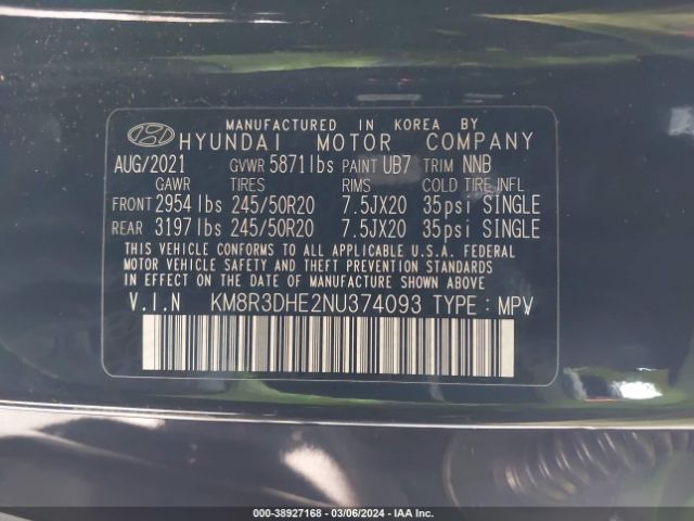 2022 HYUNDAI PALISADE SEL KM8R3DHE2NU374093 | اسود Used Automatic Gasoline 15,523 mi 3.8L V-6 نعم Front End Mechanical 4 Door 6 Cilinder